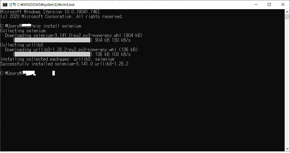 Selenium을 설치하는 것은 기본적으로 pip를 이용한다.