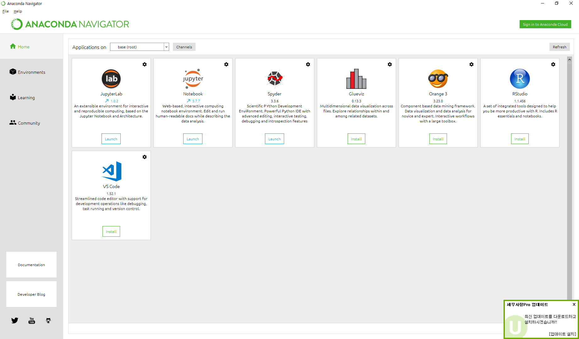 실행된다. 쥬피터 노트북 하단에 Launch를 누르면 실행된다~