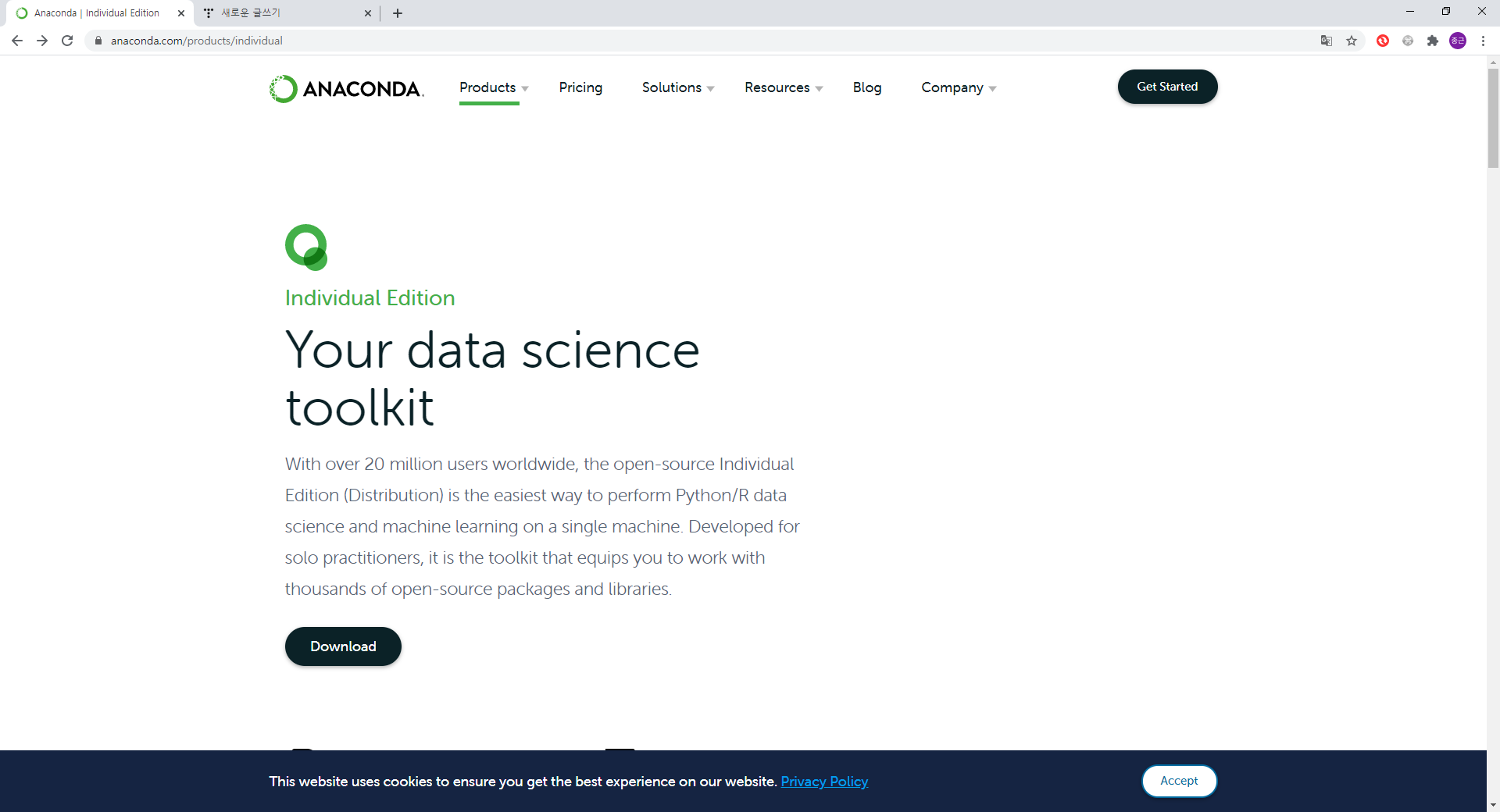 상단 주소로 가서 아나콘다를 다운로드한다.~